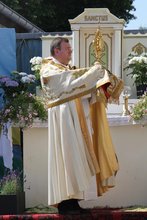 Unterstützt wurde Pfarrer Robert von Pater Damian Ugwuanyi. Die musika-lische Gestaltung der Messe und der Prozession hatte die Musikkapelle Göcklingen übernommen. Mit dem eucharistischen Segen in der Pfarrkirche und herzlichen Worten des Dankes an alle Mitwirkenden, Helfer-innen und Helfer und alle